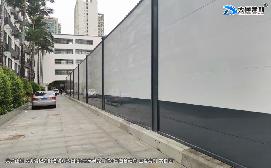 大通建材 A類裝配式鋼結(jié)構(gòu)烤漆圍擋半龍骨4米高定制款+圍擋基礎(chǔ)塊 現(xiàn)場安裝