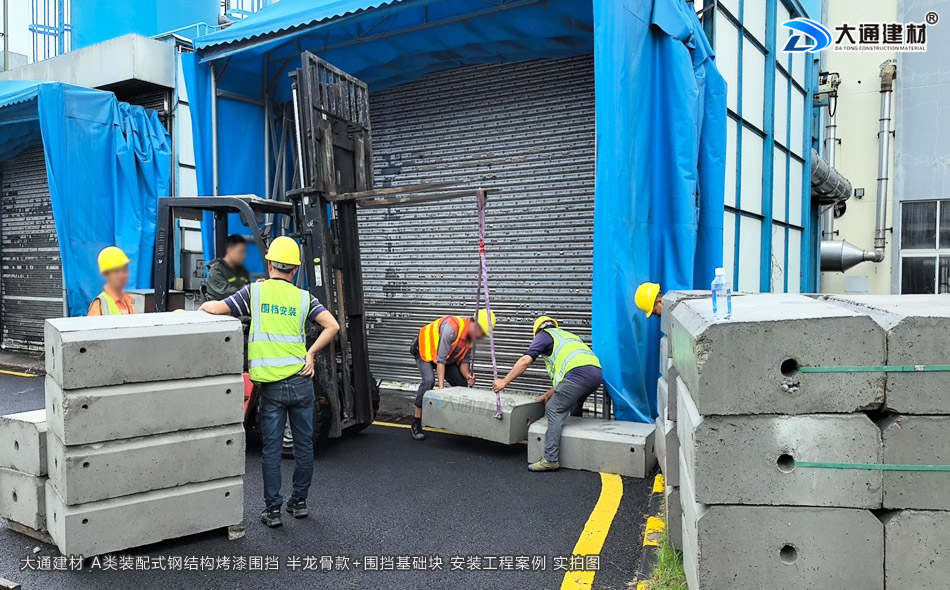 以下展示的圍擋圖片是大通建材把烤漆鋼圍擋A款、圍擋基礎(chǔ)塊送到施工現(xiàn)場后,專業(yè)的安裝團隊對產(chǎn)品進行安裝施工環(huán)節(jié)
