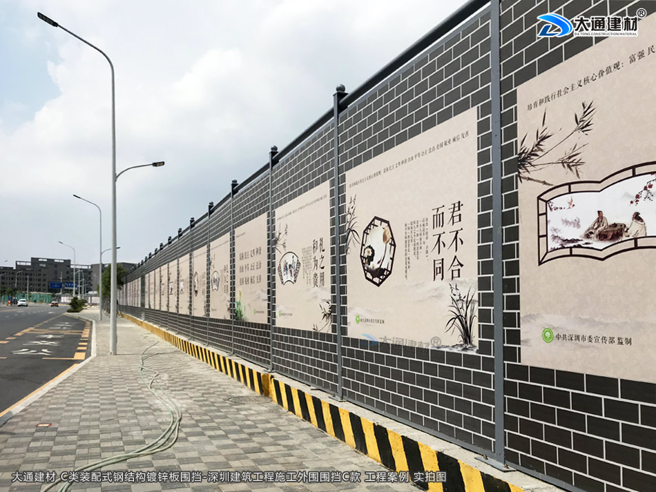 深圳市大通建材鋼圍擋C類定制款采用框架式結構,輕鋼材料降低自重,結構穩固,抗風強度高。鋼圍擋核心受力關鍵點由立柱、斜拉桿和橫稱加強筋共同構成,三重受力防護充分提高了圍擋的抗傾覆穩定性,抗剪強度和抗彎強度。通過受力模型計算,抗風等級大于10級;快速安裝,標準化拼裝; 循環使用,環保耐用; 耐火阻燃,不怕高溫等特性 適用于施工工地圍擋隔離防護。