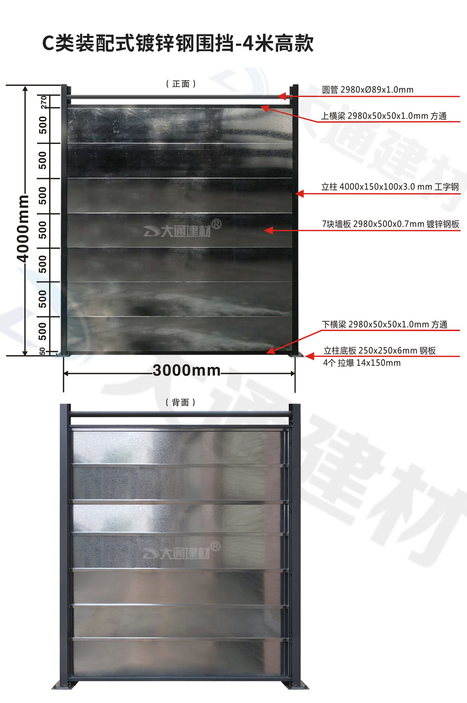 若想了解更多“大通建材 C類鍍鋅鋼圍擋定制款”規格與價格等詳情 請致電13826562448梁經理