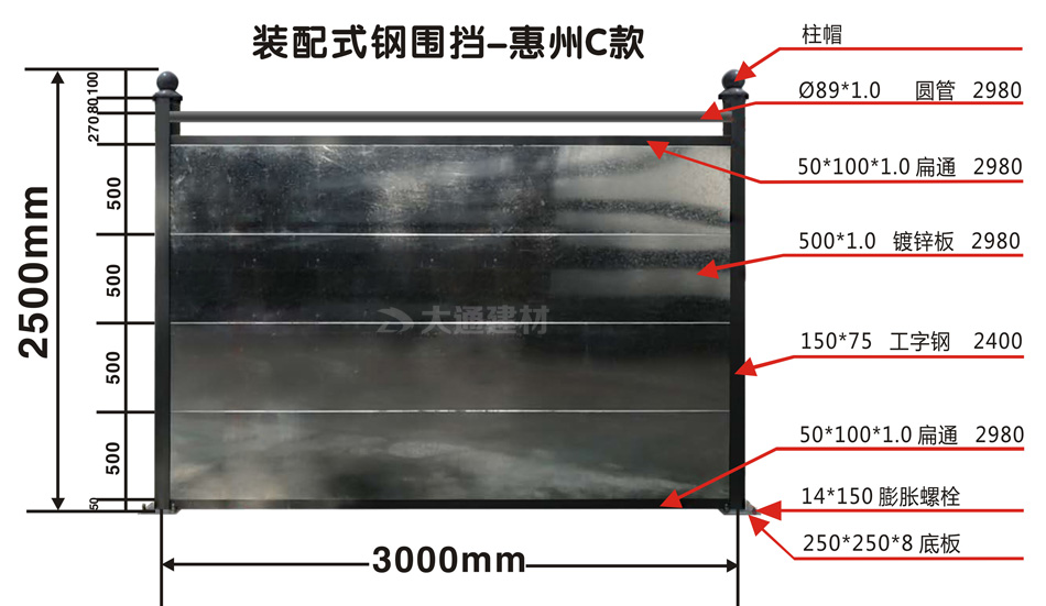 深圳大通建材-裝配式鋼結(jié)構(gòu)圍擋惠州C款-惠州工程施工圍擋案例