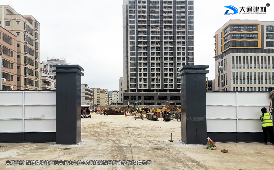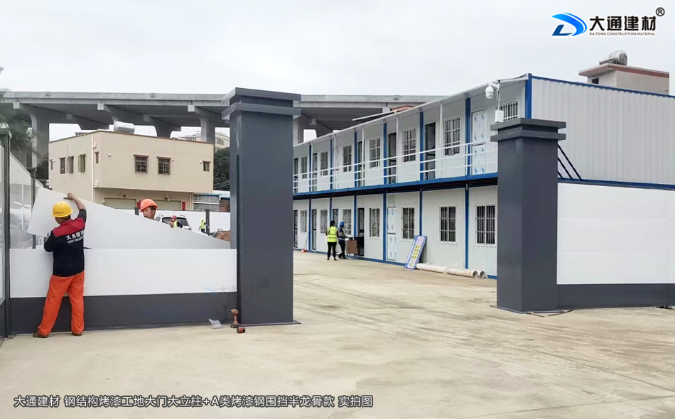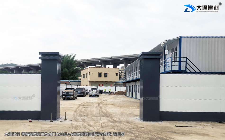 上圖是 深圳市大通建材的鋼結構烤漆工地大門立柱與A類烤漆鋼圍擋半龍骨款 正面實拍圖