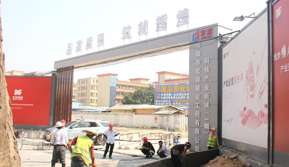 深圳市大通建材有限公司標準工地大門-深圳宏源建設(shè)項目工程施工工地大門案例