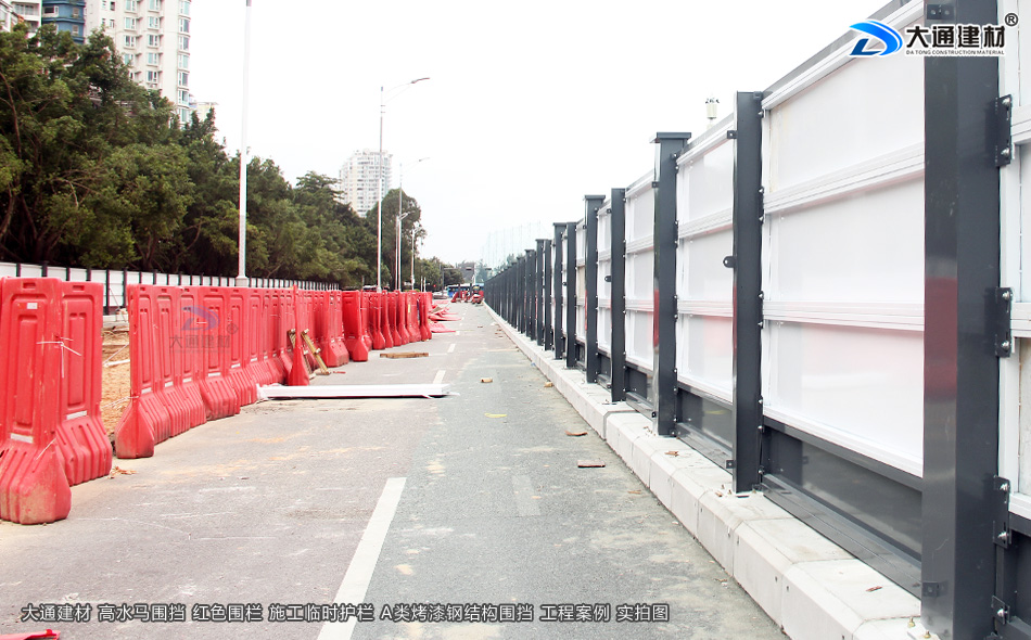 大通建材為各項目工程單位提供“手提水馬、高水馬圍擋、膠馬護欄”等產品的生產批發與配送安裝等服務。大通建材高水馬圍擋是城市市政工程和建筑工程文明施工時臨時設置的防護欄,能在一定程度上保證施工安全。同時施工時設置大通圍擋能維護市容景觀的一種全新人性化文明施工的保障設施。