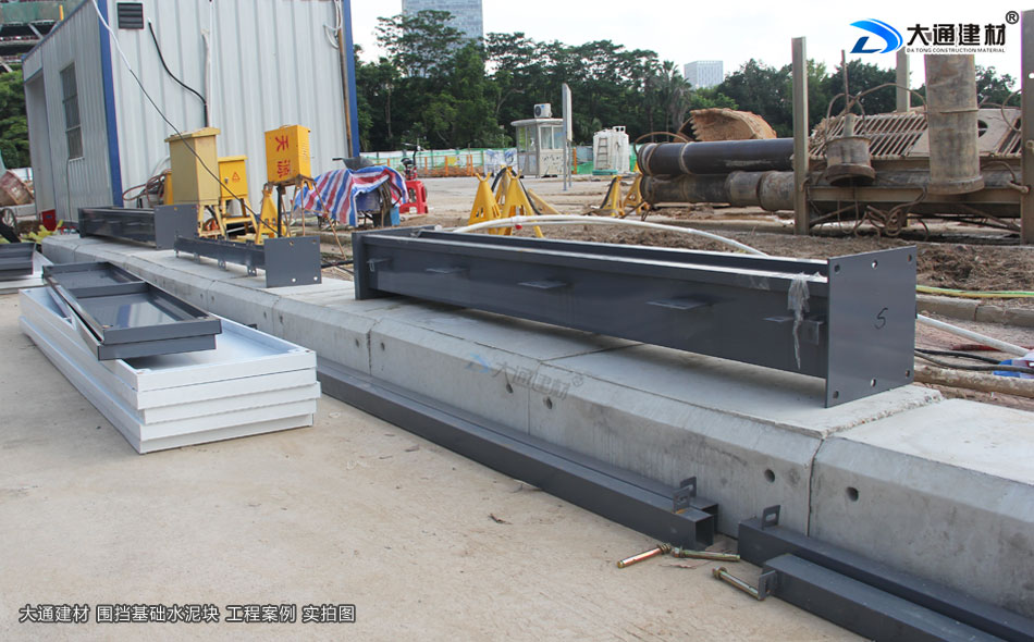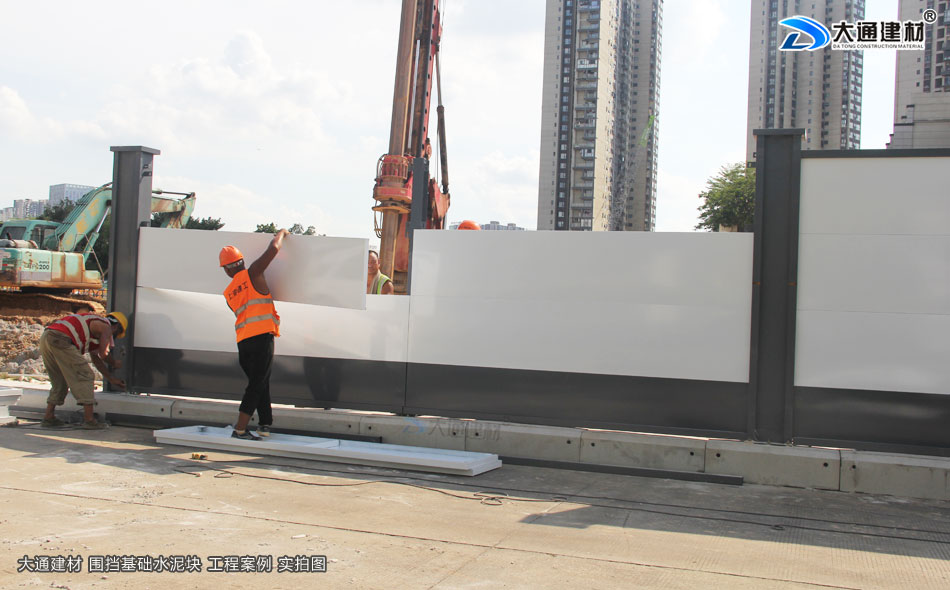 上述展示 深圳市大通建材的圍擋基礎墩與圍擋的安裝過程
