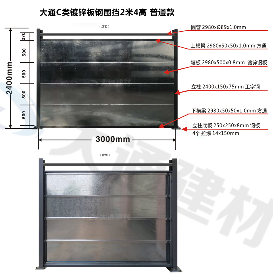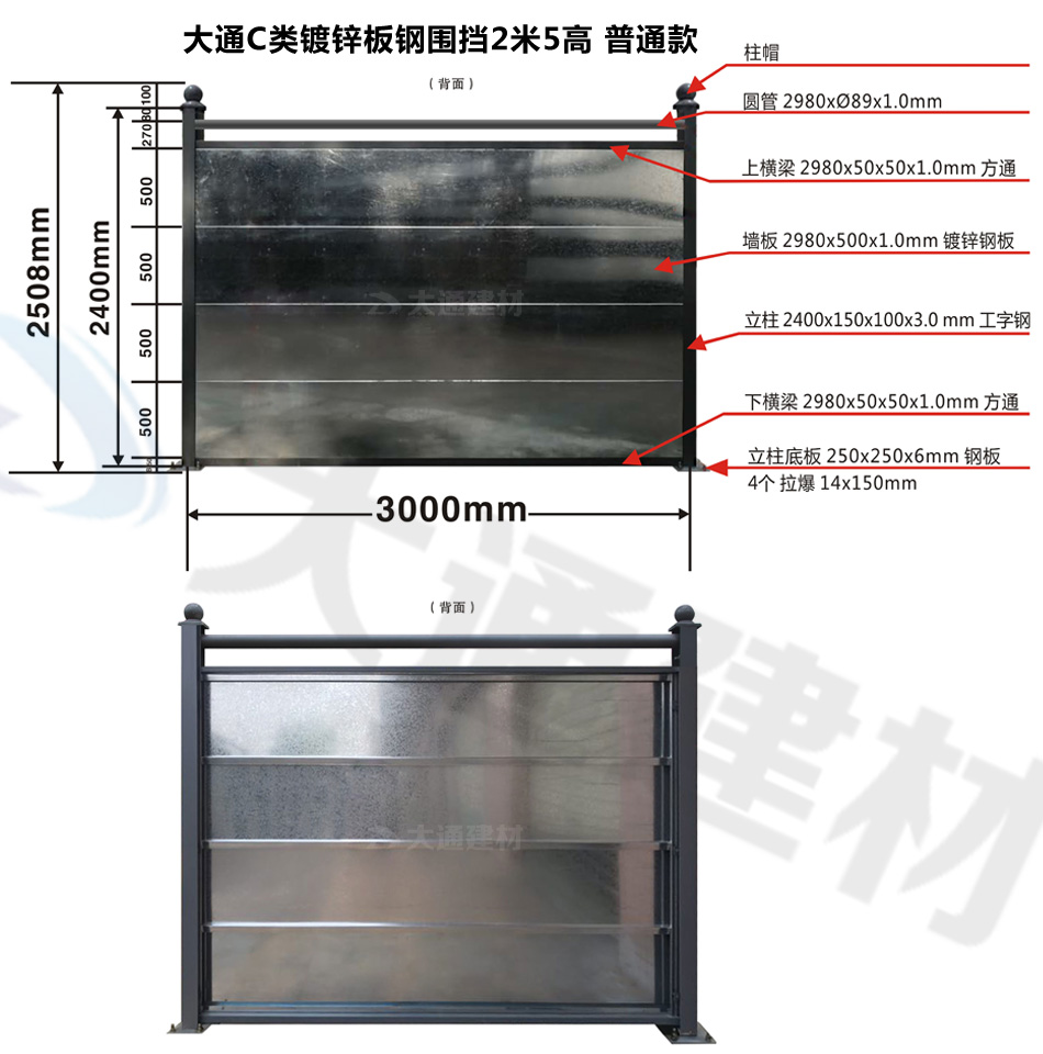 大通C類鍍鋅板鋼圍擋普通款 經(jīng)典案例展示(上圖為圍擋正面、下圖為圍擋背面)