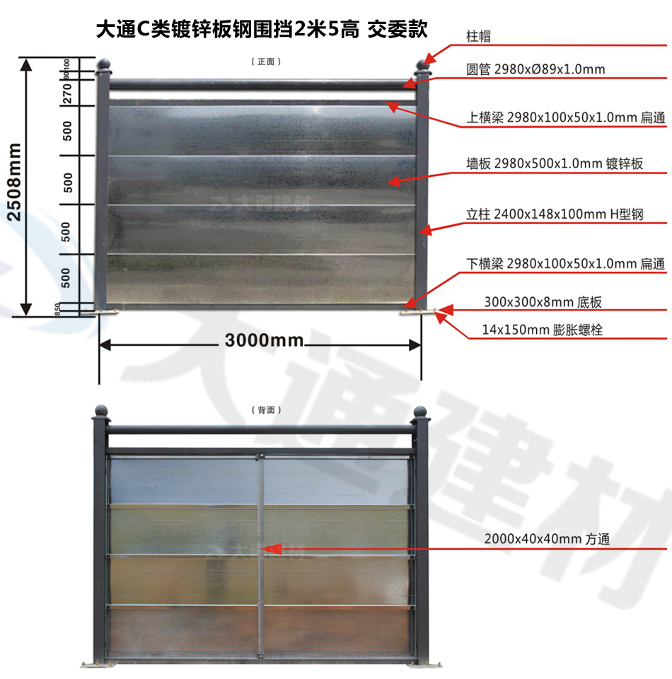 大通圍擋為您解答關(guān)于“大通C類鍍鋅板鋼圍擋常用款式的尺寸規(guī)格介紹”相關(guān)問題?