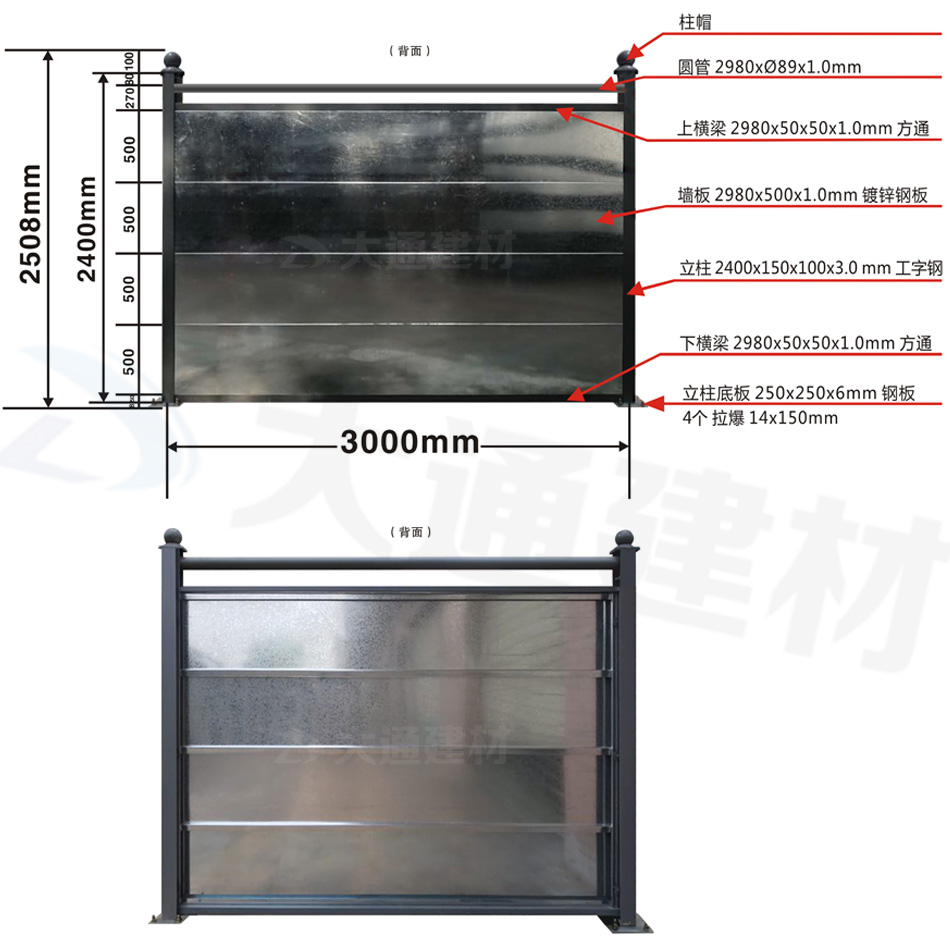 工字鋼圍擋C類鍍鋅板2.5米高有帽款 規格參數 如上圖展示