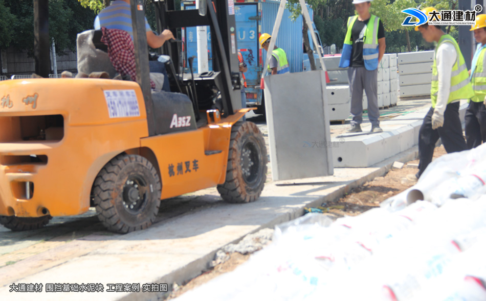 大通建材圍擋基礎水泥塊優勢一:成品是塊狀水泥預制塊,運輸方便,拆裝便捷,節約人工成本。
