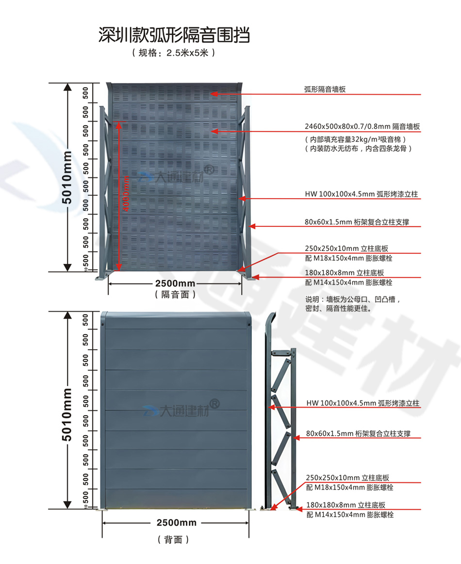 深圳市大通建材有限公司為各項(xiàng)目工程單位提供 各類隔音屏圍擋、鐵路隔音圍擋、公路隔音圍擋、高速隔音圍擋、高架橋隔音圍擋的生產(chǎn)定制、批發(fā)零售、配送安裝等包工包料的服務(wù),具體詳情 請(qǐng)致電13826562448或微信dt13826562448梁先生